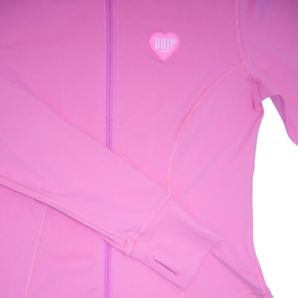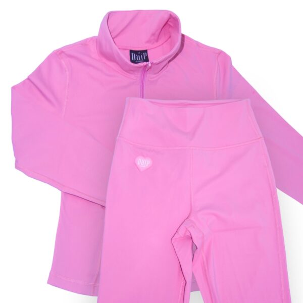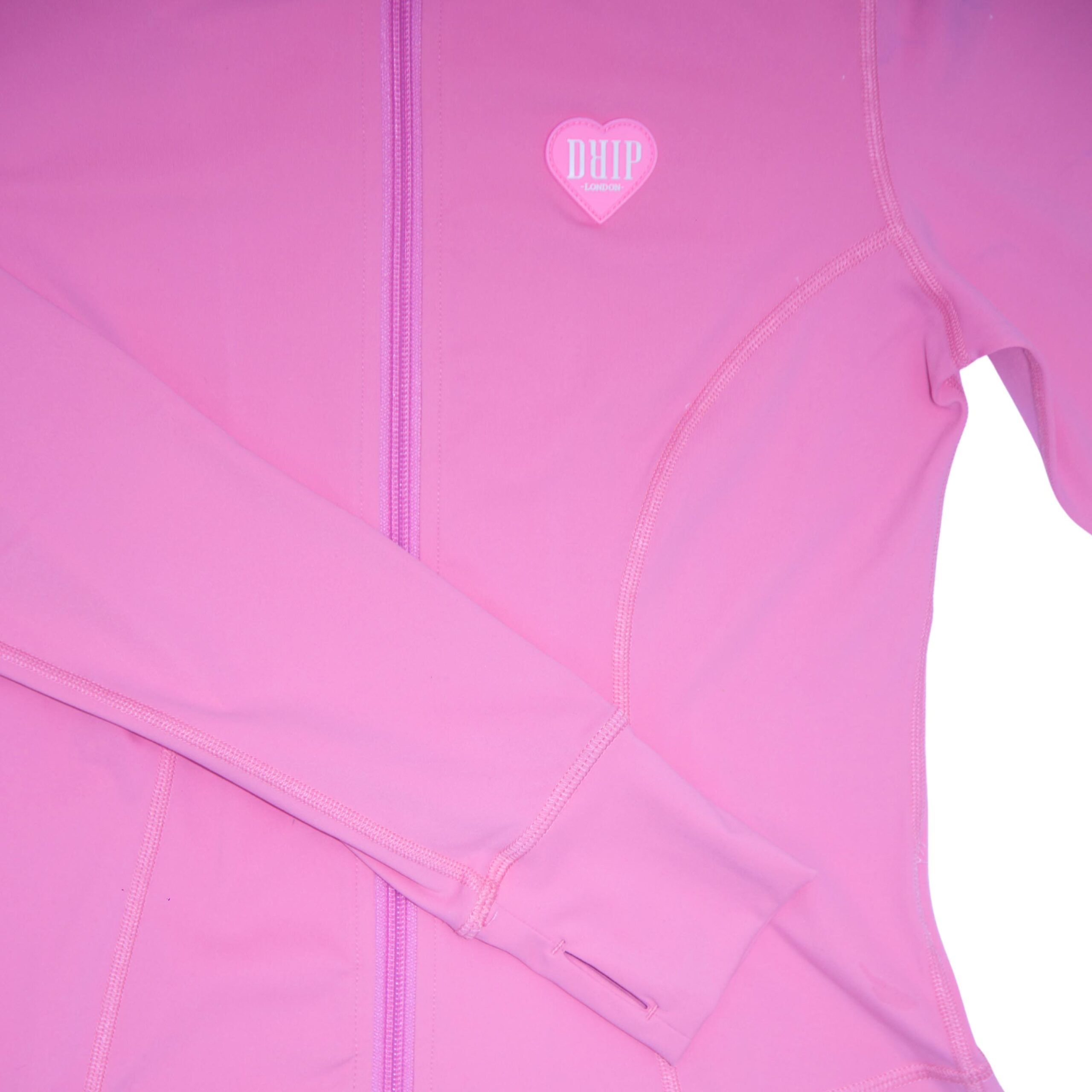 Third quarter addition. Pink yoga pants and zipped love-heart breasted DRIP Logo on top and bottoms. Elsastine stretchable fabric, for super comfort. Slimming silhouette with high-waisted wasteband. Machine washable and a flattering contour profile. Elastine and cotton fabric mix for durability, breathability and a adjustable fit. Stay on-brand whilst you workout.