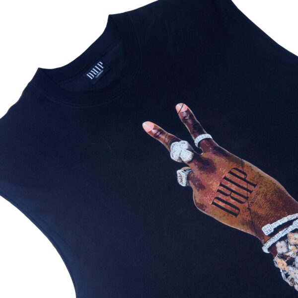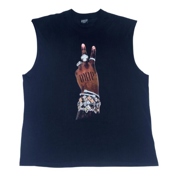 Deuces tank/vest low sided sleeveless black t-shirt with DRIP 2-fingers (deuces) Motif. Lose-fit, machine washable and a unisex fit. Made of 100% spun pre-shrunk cotton, it will ensure a very comfortable fit and breathable natural fabric. Made in the United Kingdom, you can be sure of a high quality fabric with a recommended wash temperature of 30 degrees . An excellent all-year round style choice, allowing you to stay on-brand and fashionable during each respective season.