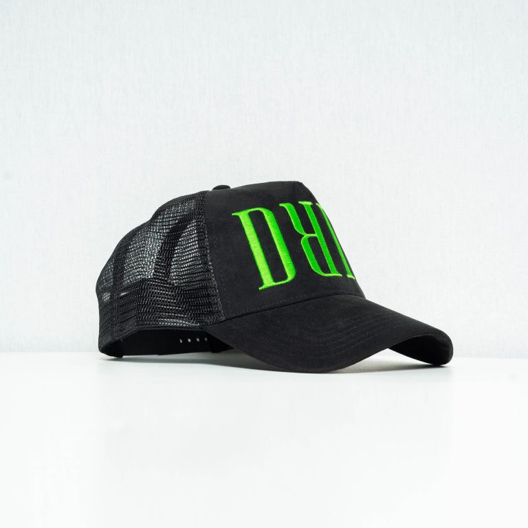 The exclusive Black & Neon Green DRIP Baseball Cap is a simple yet classic and a timeless American 5 panel design. Unlike many baseball caps on the market, DRIP has a slightly deeper crown cut for a snug fit. Made from a material mix of suede fronted panels and polyester breathable mesh for comfort, the pre-curved peak provides essential sun-visor coverage. The front construction is seamless with side-stitched eyelets providing aerodynamic circulation and ventilation throughout. An excellent all-year round style choice allowing you to stay on-brand during the summer months and fashionably conscious at all other times.