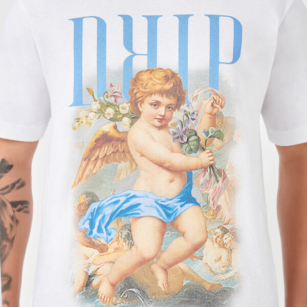 New summer edition oversized Cherub Off White Tee Baby Blue DRIP Logo on the front and small Logo on reverse. Simply classic and a timeless superior cut design. A great shape, machine washable and available for men and women. Made of 100% cotton, it will ensure a very comfortable fit and breathable natural fabric. Made in the United Kingdom, you can be sure of a high quality fabric with a recommended wash temperature of 30 degrees . An excellent all-year round style choice, allowing you to stay on-brand and fashionable during each respective season.